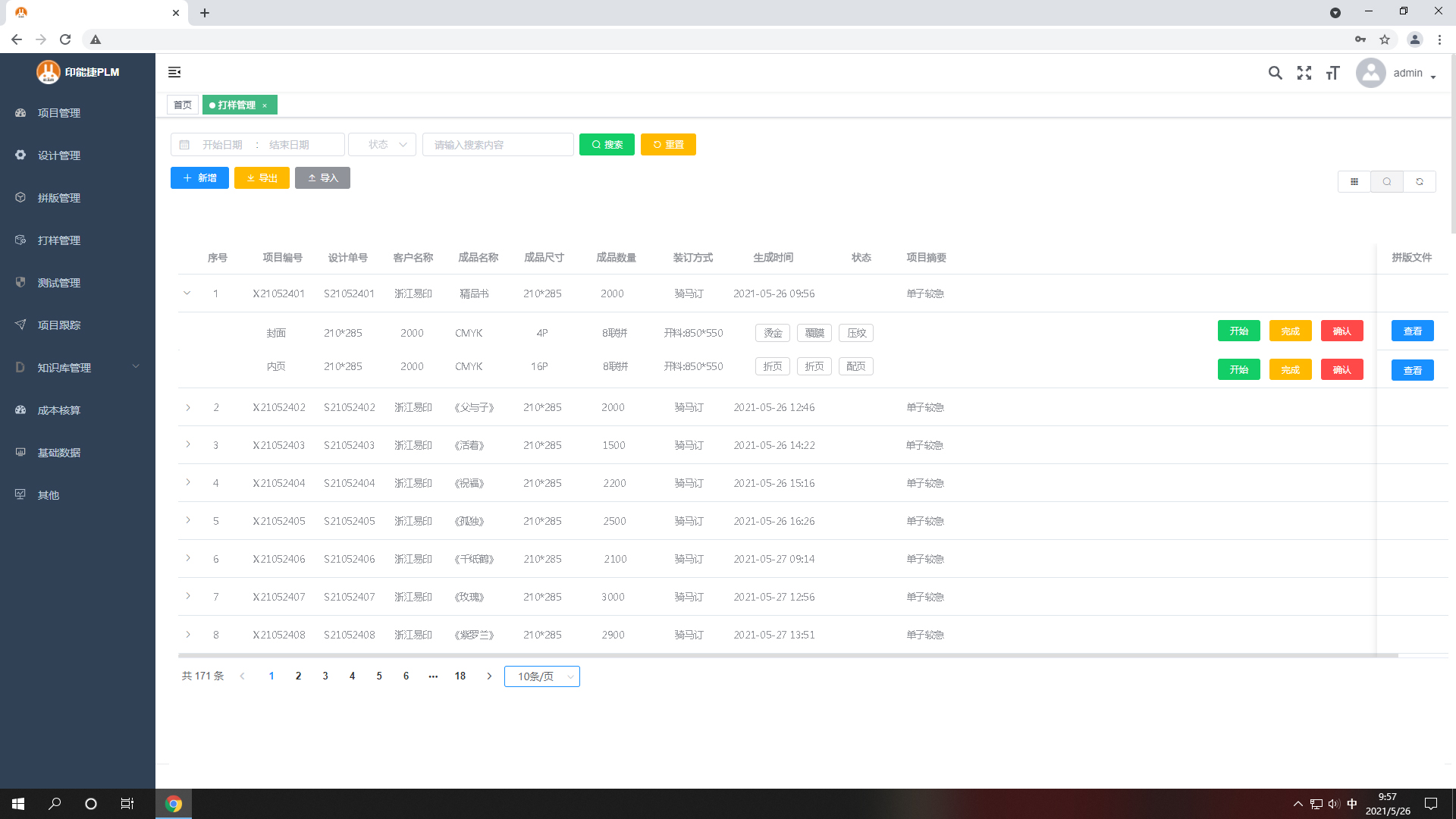 2.數(shù)碼打樣開始,點(diǎn)‘開始’每個打樣任務(wù)