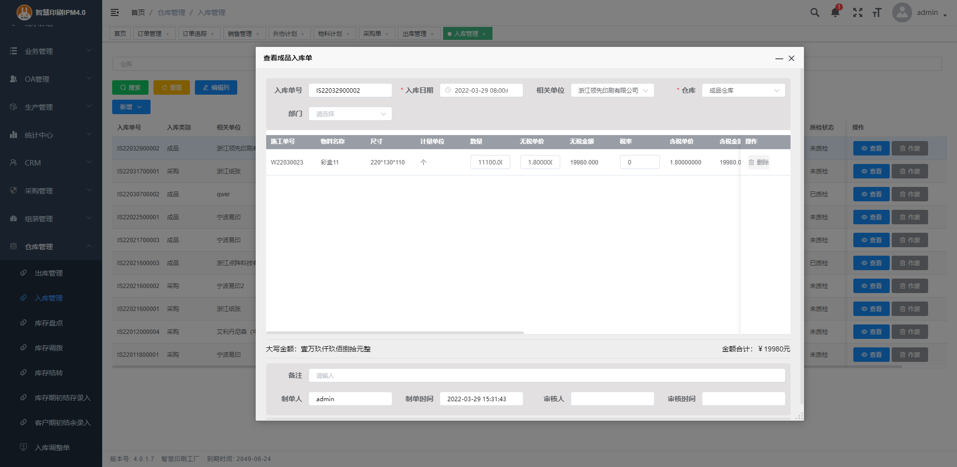 2.入庫管理自帶多種常用入庫類別。