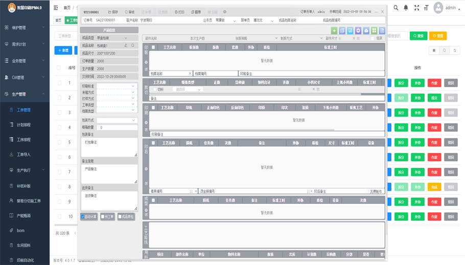 3.選擇不同成品類別可以出現(xiàn)不同界面,系統(tǒng)能支持印刷行業(yè)各種業(yè)務類型。